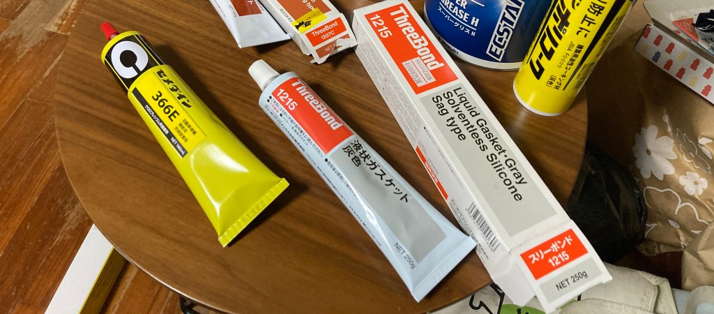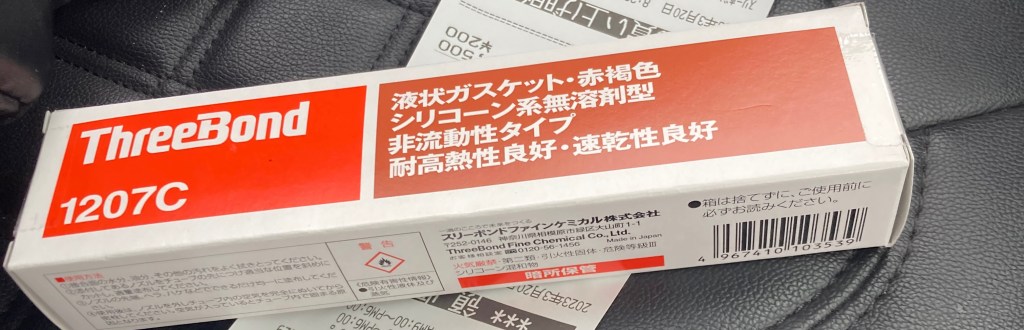こちらは大好きなレストアYoutuber シュンヤのガレージライフさんで紹介されていたThree Bondo 1207Cです。キングピンに使用した耐水耐油性の高い赤ボンドです。