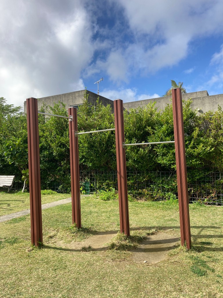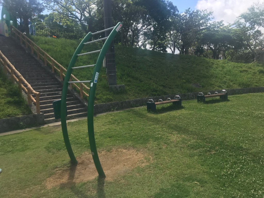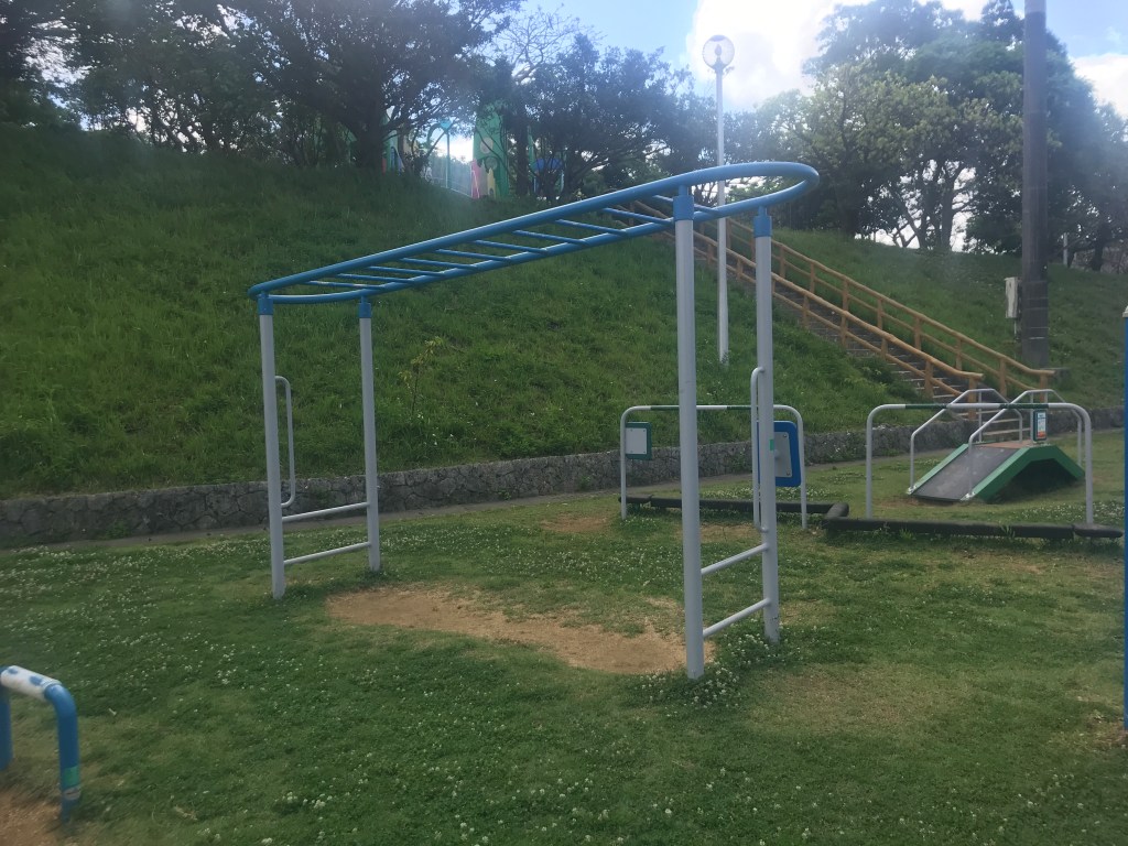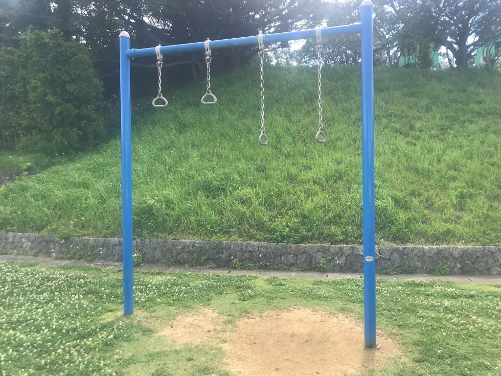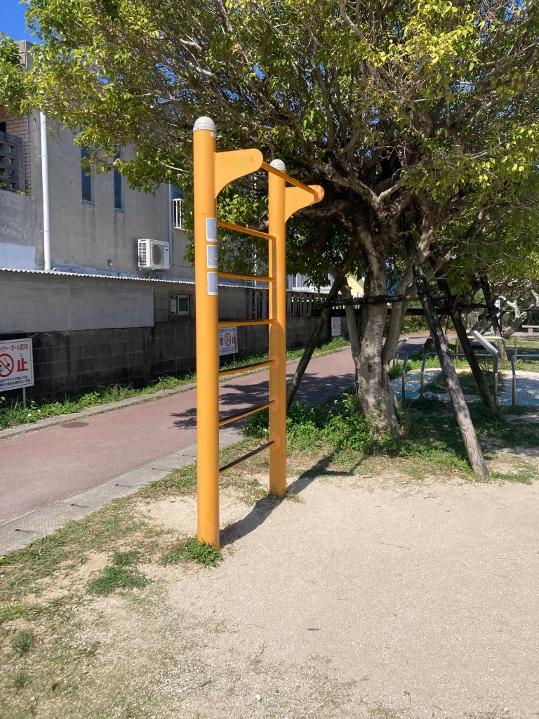 鉄棒仲間から教えてもらった貴重な公園です google mapにも載っていない名前もない公園吊り輪もあり超レア この設備は沖縄で4ヶ所目になります。