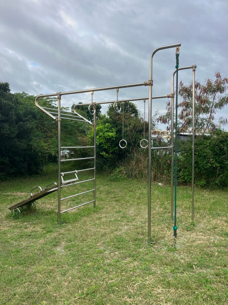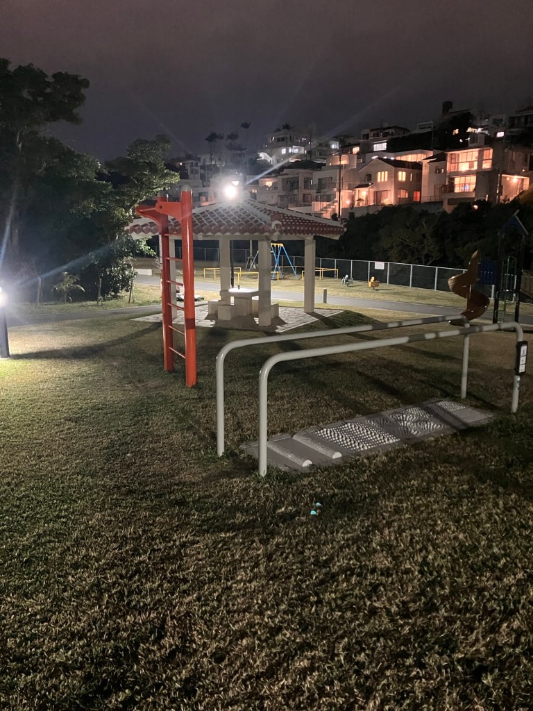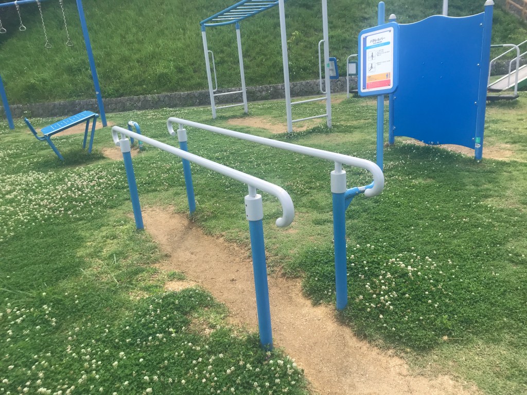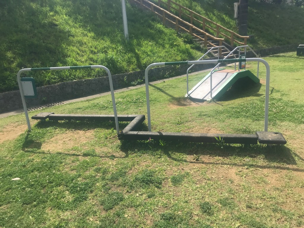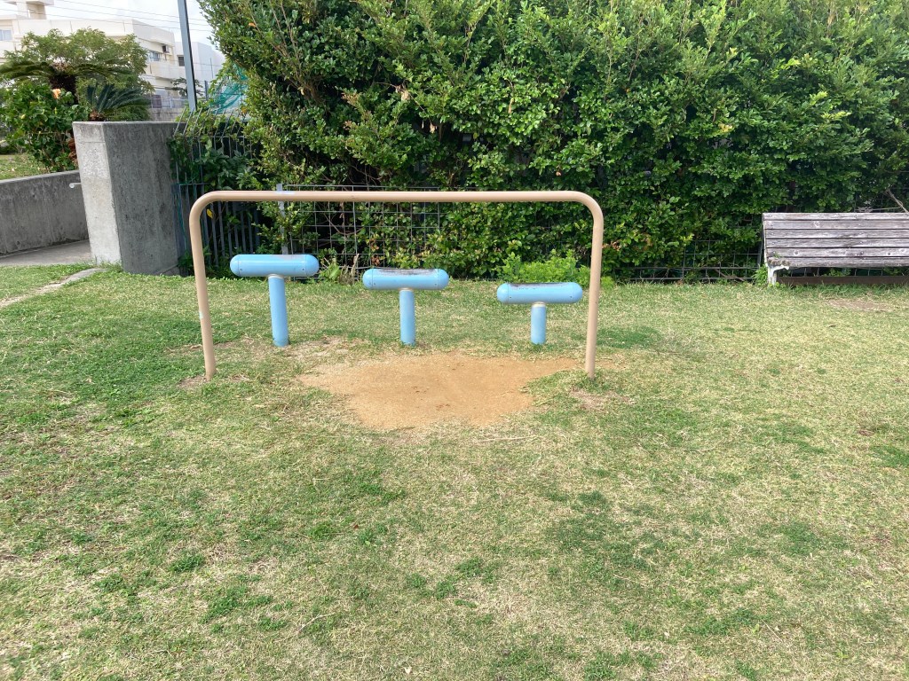鉄棒仲間から教えてもらった貴重な公園です google mapにも載っていない名前もない公園吊り輪もあり超レア この設備は沖縄で4ヶ所目になります。