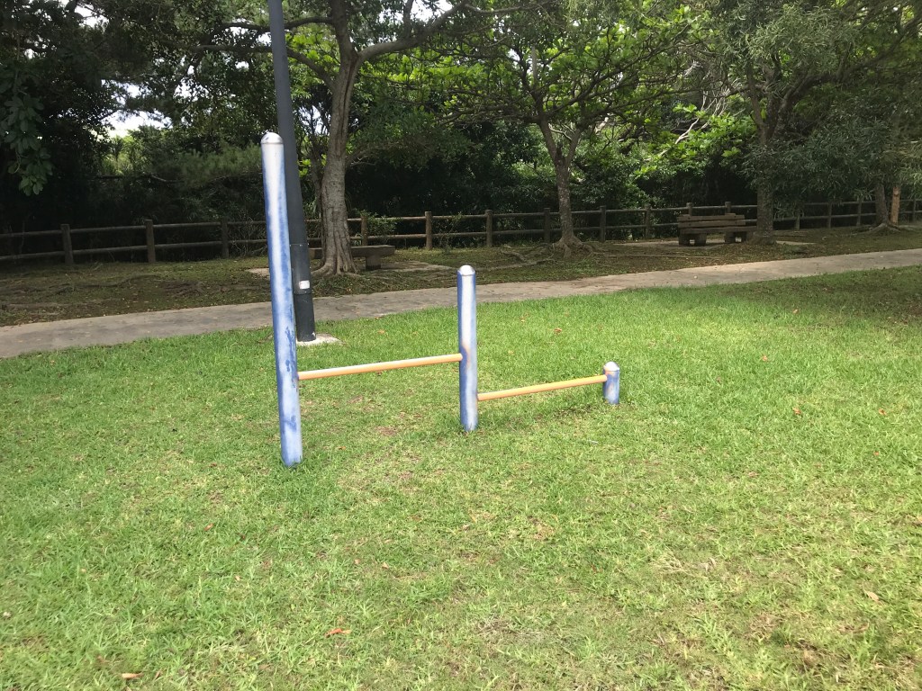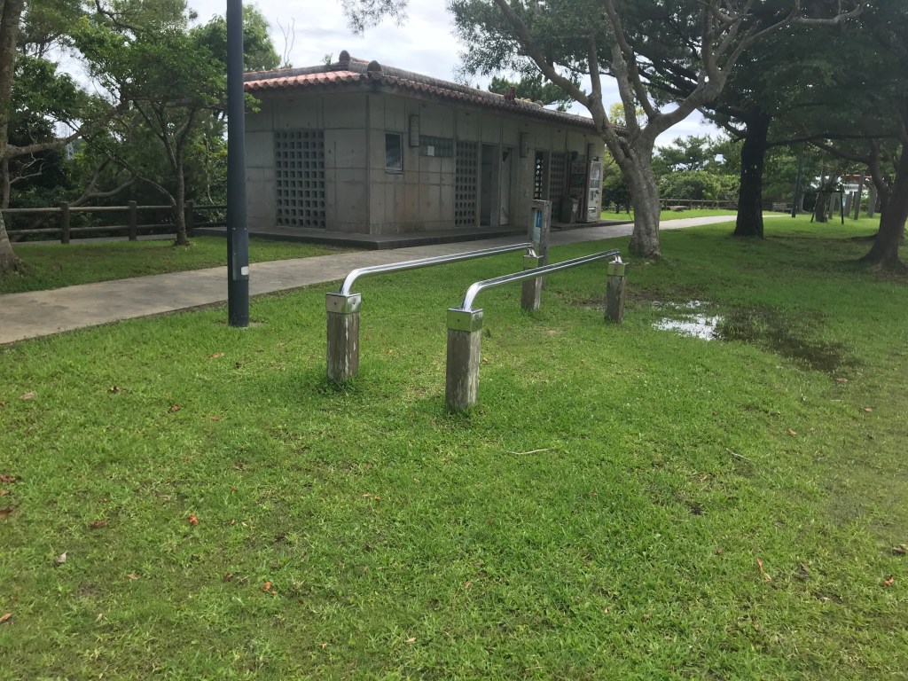 鉄棒仲間から教えてもらった貴重な公園です google mapにも載っていない名前もない公園吊り輪もあり超レア この設備は沖縄で4ヶ所目になります。