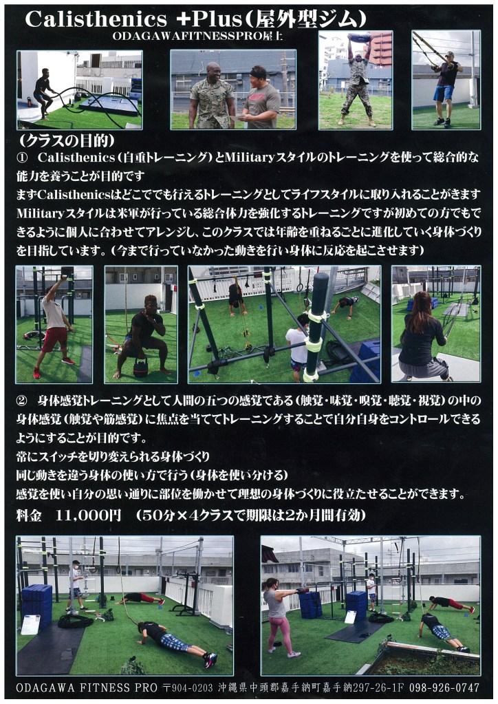 嘉手納町にあるOdagawa Fitness Proさん 一階には屋内の本格的なジムがあり、屋上にはKenguru製の鉄棒を完備しています。