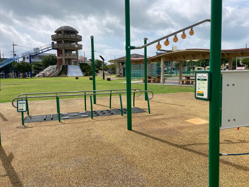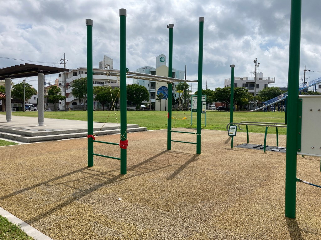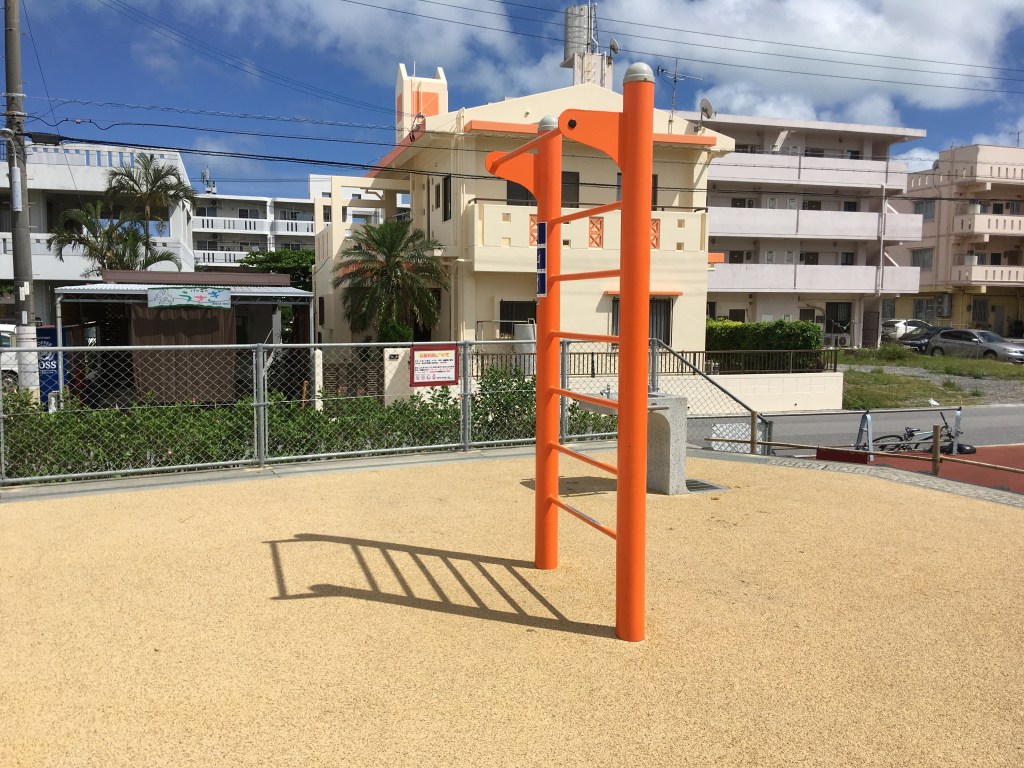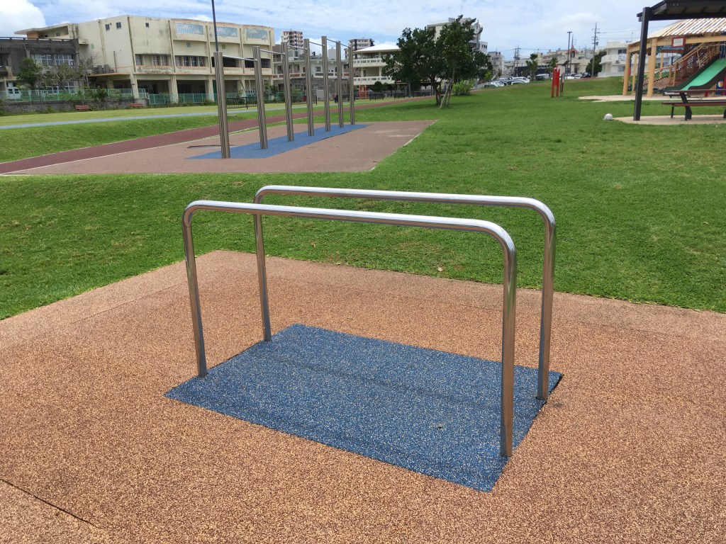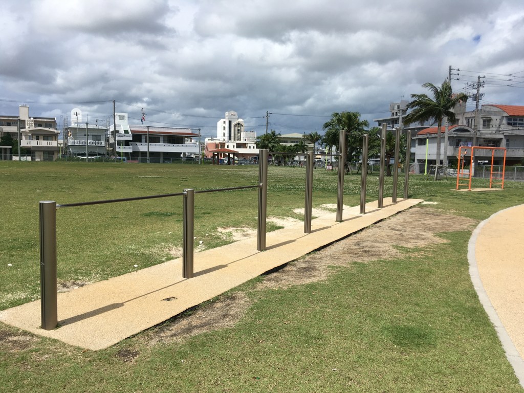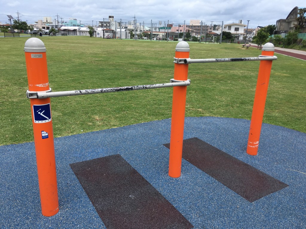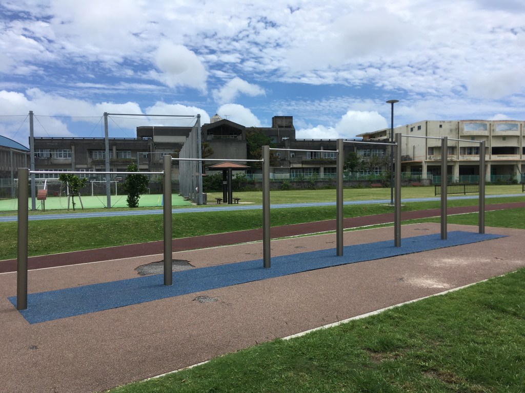 初めて訪れたときとても感動した公園 子供から大人まで幅広く鉄棒ができる沖縄でおそらくもっとも鉄棒が充実した公園 低~高まで幅広く8連になっています!これほど美しい光景は中々見ることができないでしょう。しかも幅も広い!最高!ここですべてのトレーニングが完結できる。