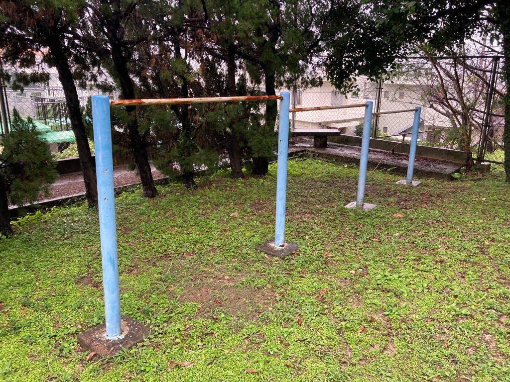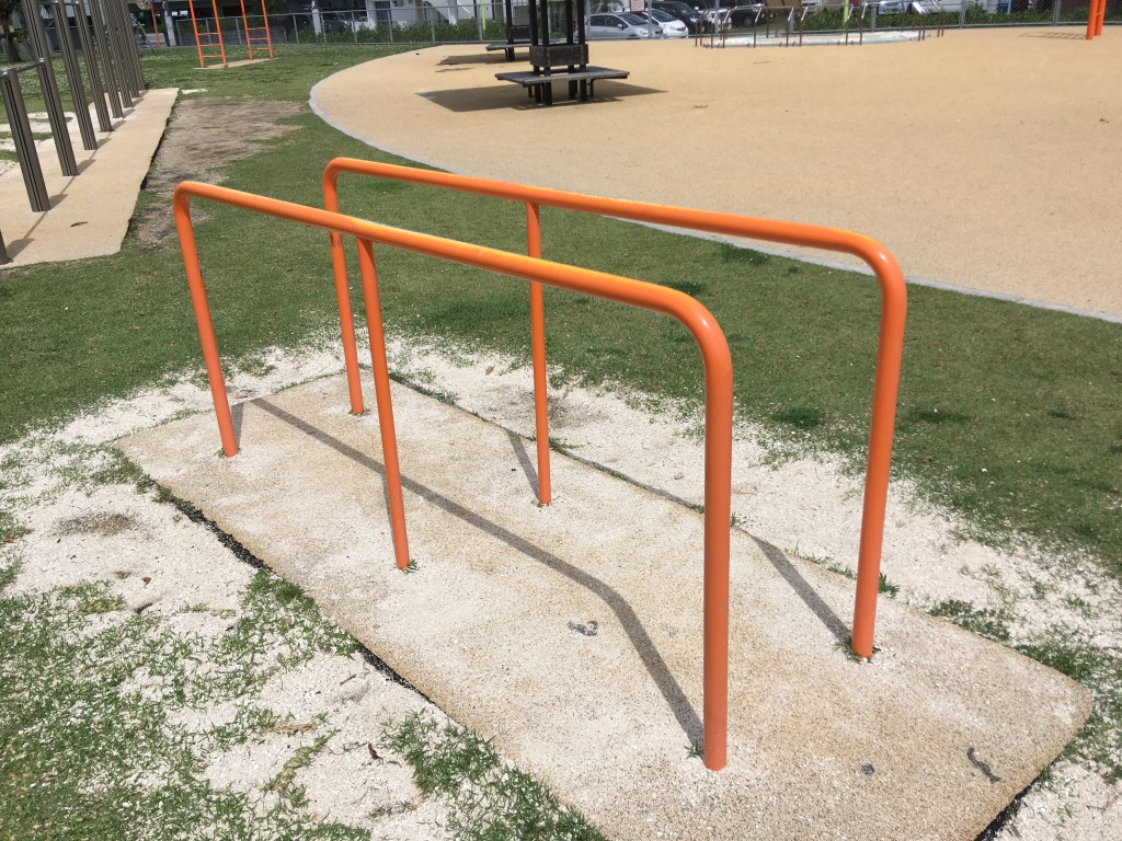 - セカンドストリート側の駐車場遊具近くの鉄棒と平行棒