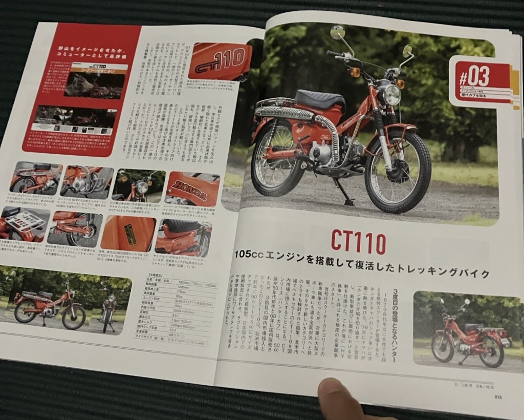 1960年代のスーパーカブをトラックに詰み、アウトドアを楽しむ為、また悪路でエンジンの吸気口を上にする事、また排気のマフラーで枯葉が燃えてしまいその対策でマフラーが上に向かせ、ブロックタイヤをはかせ悪路に強いバイクとなった。農場やハンティングで使われてきた事からハンターカブとも呼ばれるようになった。60年代のC105h(1963年) 、Trail 90 CT(cub trail)200(1964年) ,CT50(1968年)(最強の副変速スーパートルク仕様4速)から始まり、また1980年代に海外オーストラリア向けにオフロード、レジャー用バイクでCT110(地面からエンジン守る為のエンジンガード、スキッドガード標準装備)
